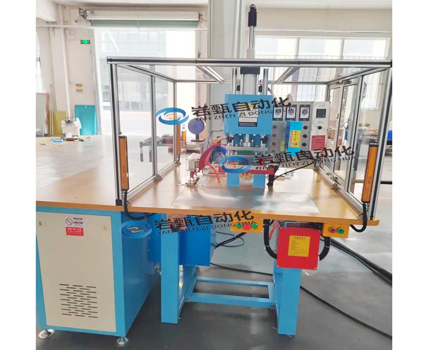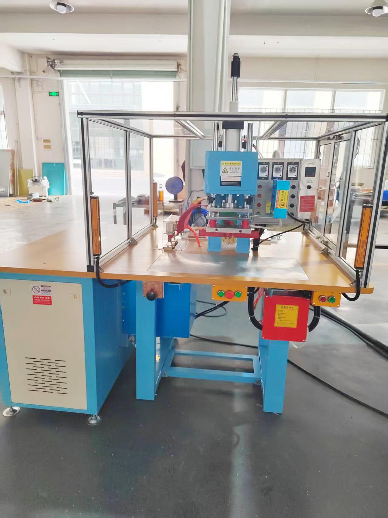 The mechanical part conforms to ergonomics and is easy and fast to operate. The machine head adopts linear bearings for up and down movement, with alternating work on both sides, which has greatly improved positioning compared to previous old equipment. The equipment has an adjustable pressure of 2 to 10 tons, which is used for product welding and cutting. After cutting, the product edge is relatively smooth and the high cycle output is relatively large.