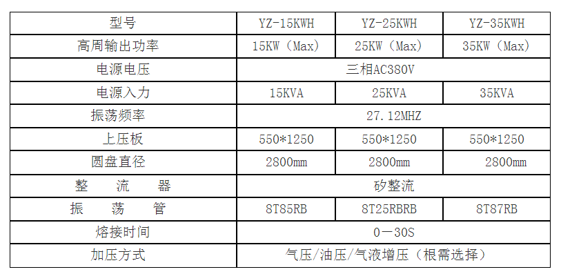 2. The equipment adopts a hydraulic system for pressurization, with a large and constant output and smooth operation. It is equipped with precision machined frames and spare parts, with a sturdy structure and good pressure resistance. The highly sensitive spark protection system can automatically cut off high-frequency current when sparks are generated, effectively protecting the equipment, molds, and products. The output force is strong, which can shorten the welding time. The turntable rotates automatically at a fast speed and high efficiency.