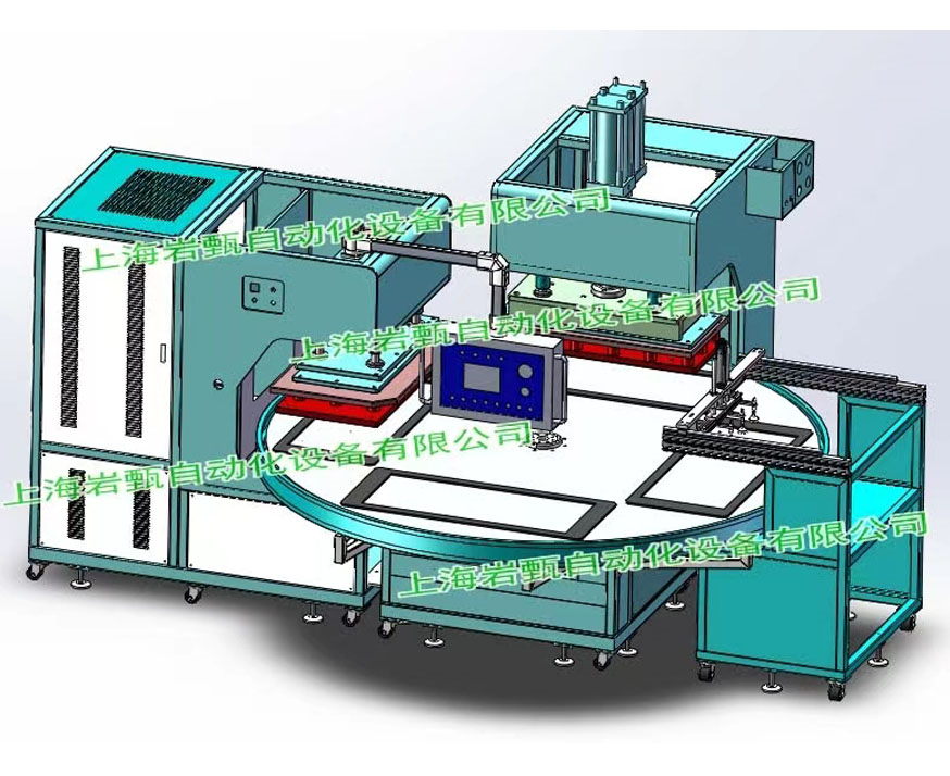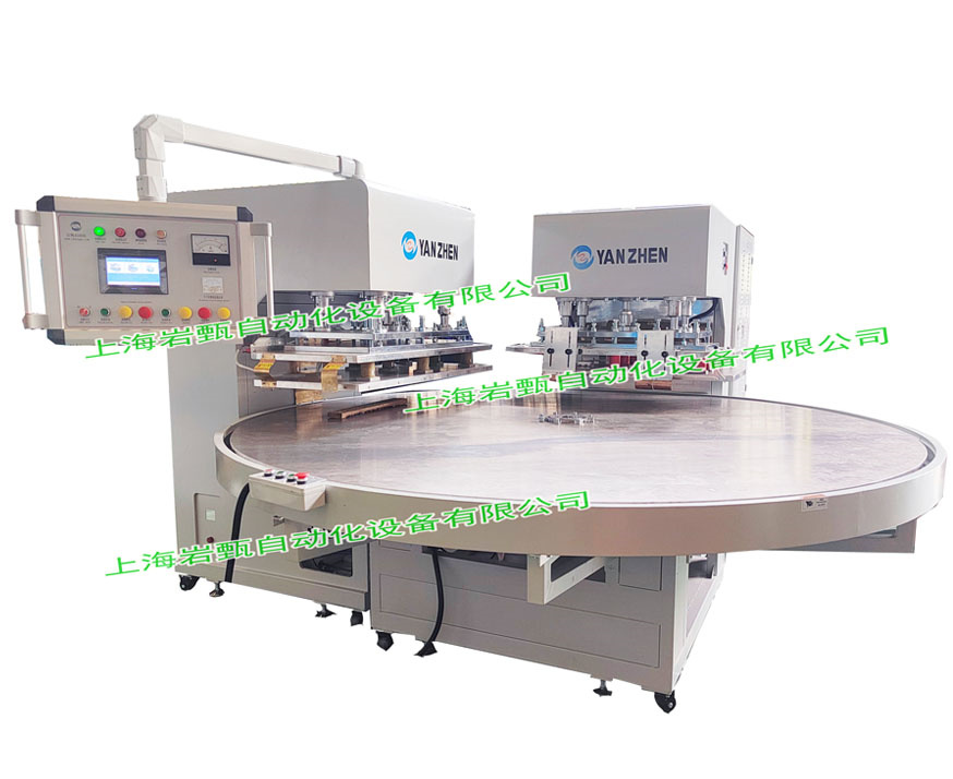 1. Four station dual head large turntable, welding and cutting integrated heat sealing machine, this equipment is divided into two heads, manual feeding/loading, one end is heat sealed and the other end is welded and cut simultaneously, and the last station is for material retrieval. The turntable diameter is 2.5 meters. Suitable for anti pressure ulcer pads, oxygen pillows, welding and cutting, large household coral fleece floor mats, carpet embossing, lettering, cutting and other processes, with high work efficiency, stability, and labor savings.