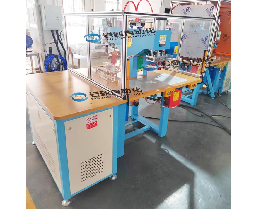 機械部分符合人體工程學,操作起來方便、快捷,機頭采用直線軸承上下運動,兩邊交替工作,比以往的老款設備定位上有很大的改進,設備有2噸到10噸的可調壓力,用于產(chǎn)品的焊接和切斷,切斷后產(chǎn)品邊比較光滑,高周輸出比較大。
